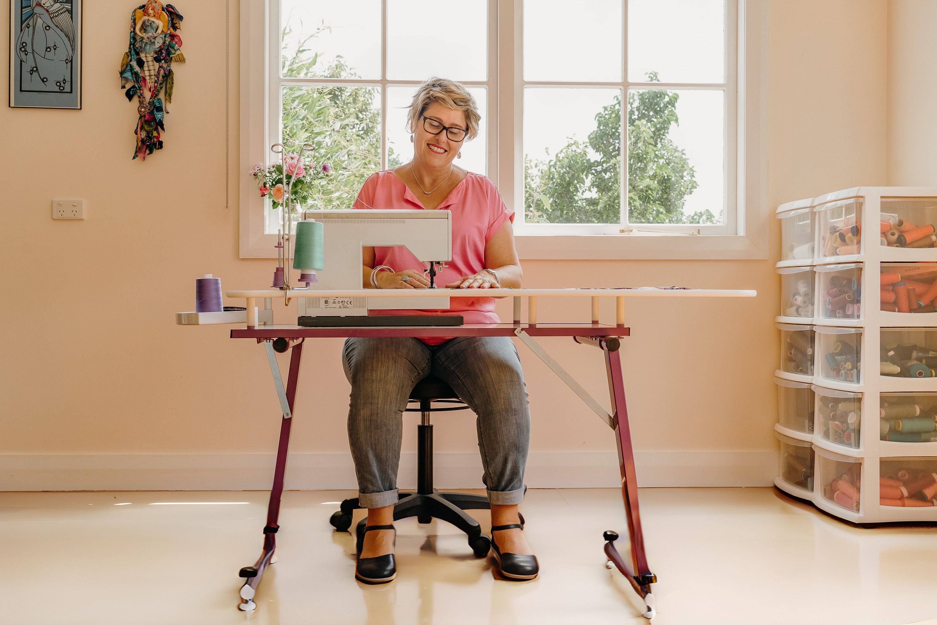 One morning in Dec 1999 Catherine woke up and said to David I have an idea. I have a concept to build a sewing table. At this time Catherine was part of a sewing group, which consisted of four mums with school age children. They lived 15-30mins away from each and met once a week to stitch at each others homes. Sewing space was always at a premium…